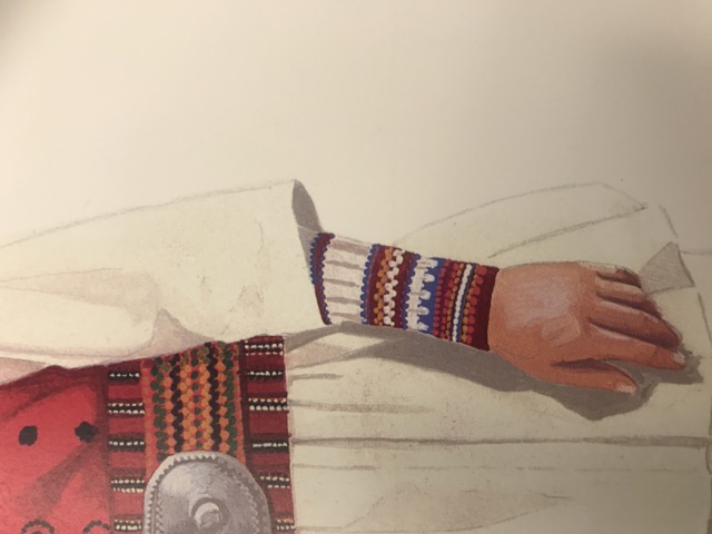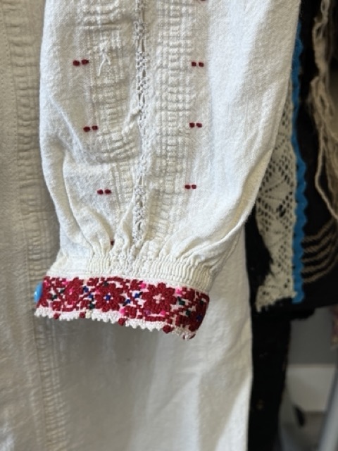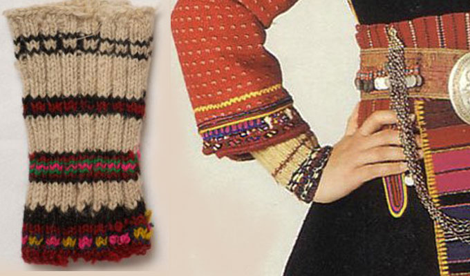 Exploring this costume with many variation of the traditional wrist pieces (heirotia) of the men and women from Oreini Serres. Men and women wore pretty much the same ones. These are false sleeves in the sense that they are worn on the wrists under the sleeves of the shirt.