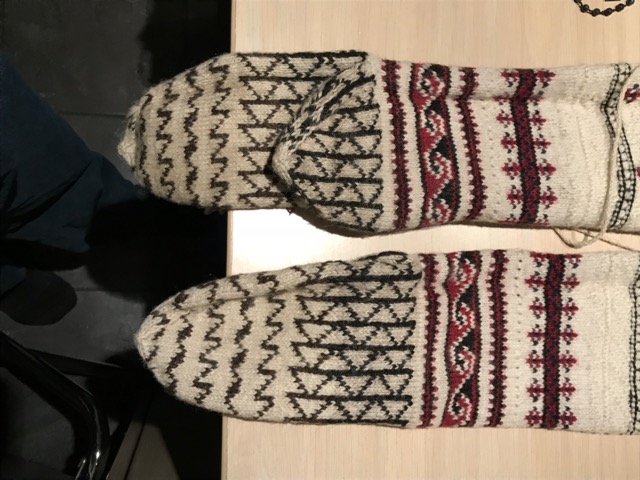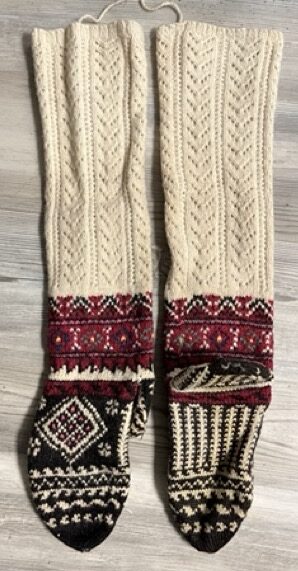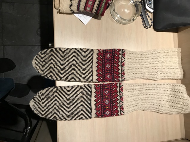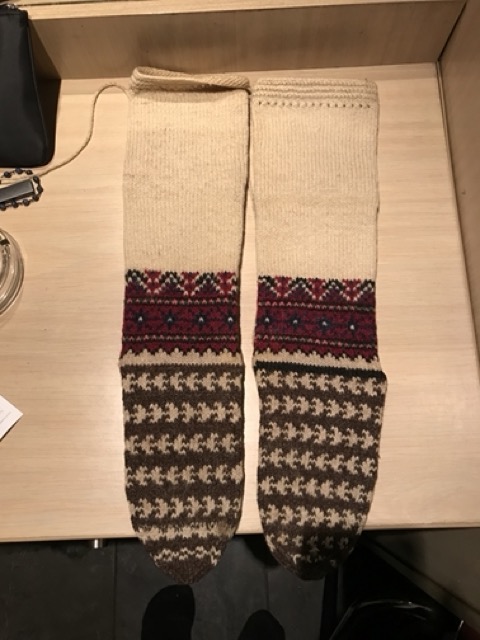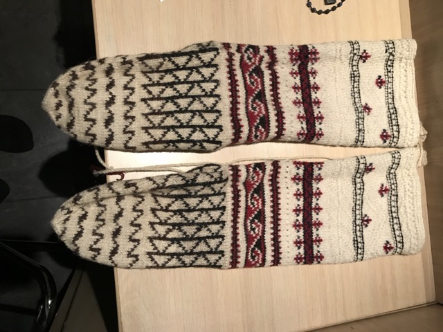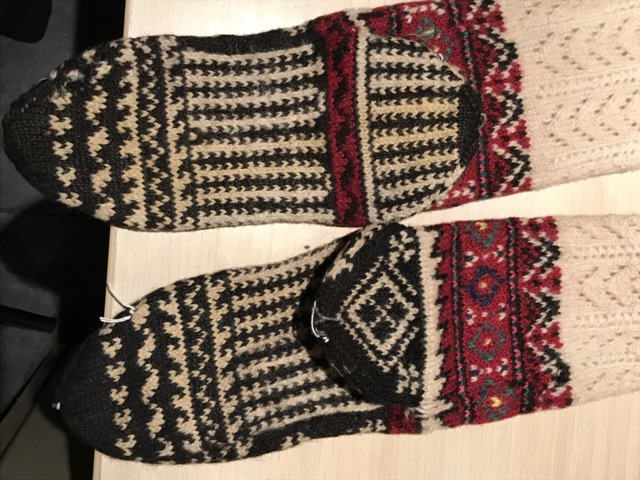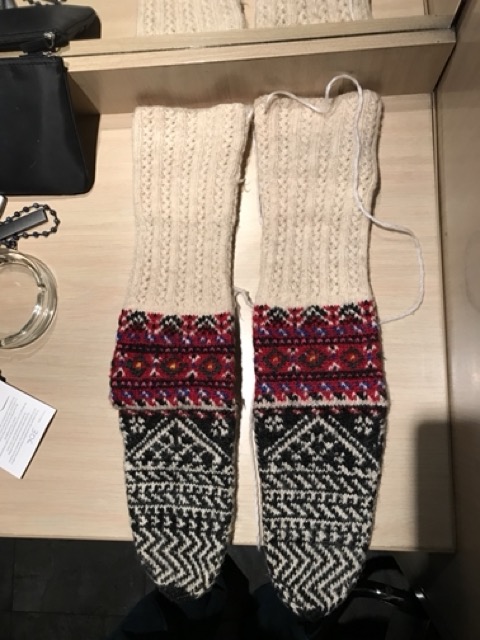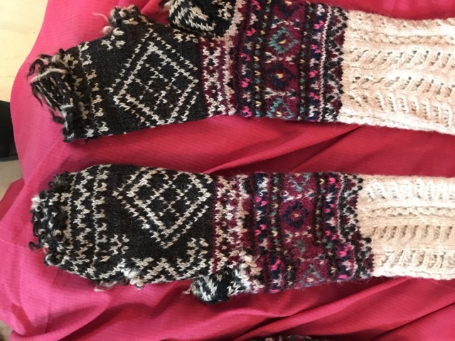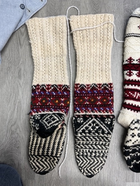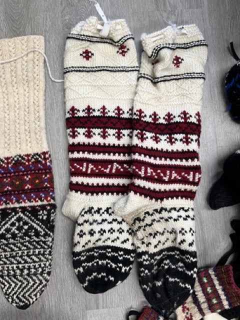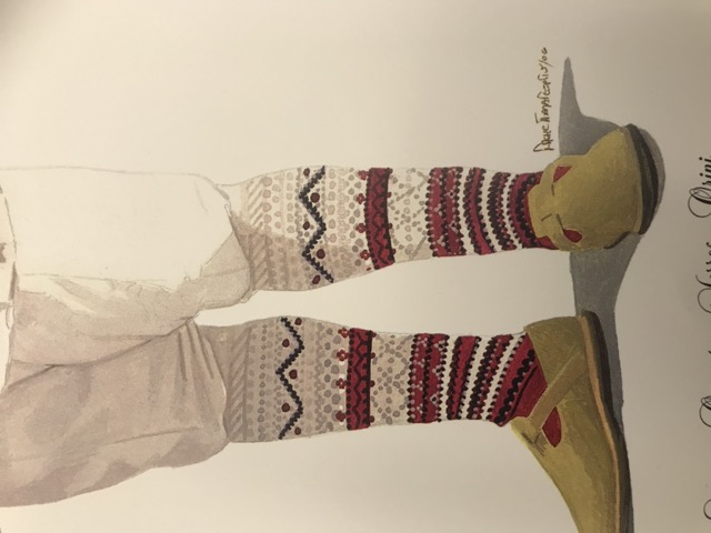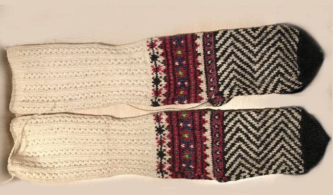 Exploring this costume with many variation of the traditional thigh high socks (tsourapia) of the women from Oreini Serres, Some men's socks also.