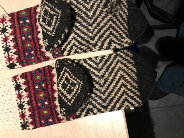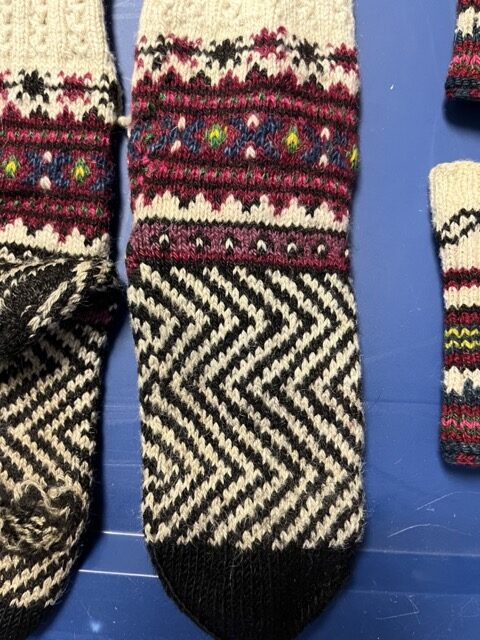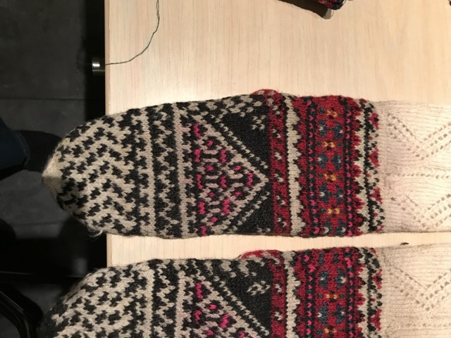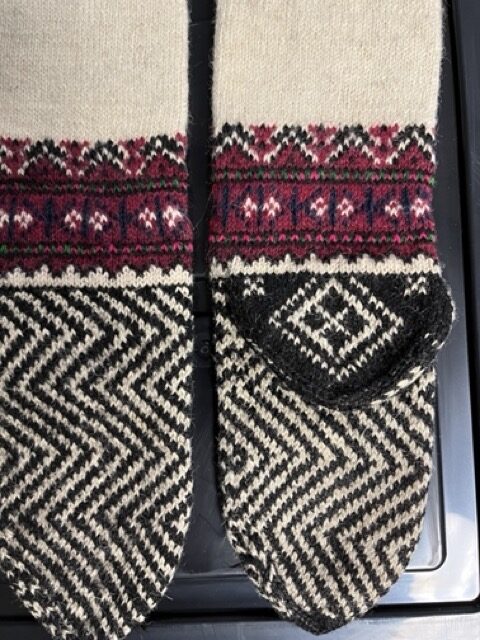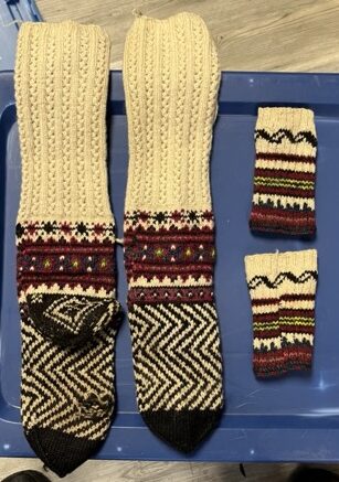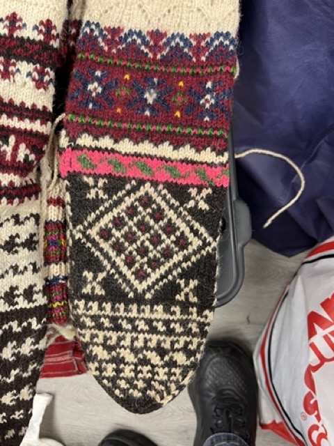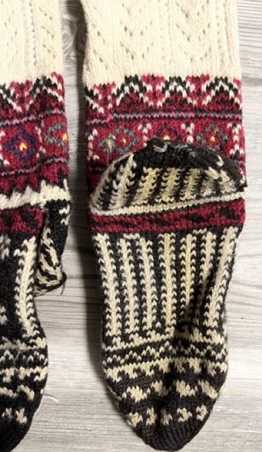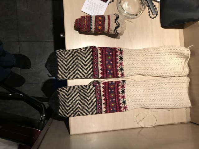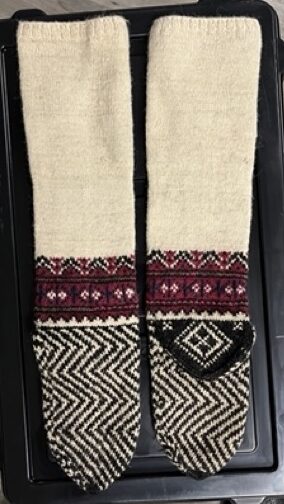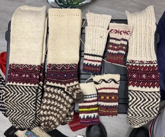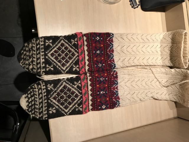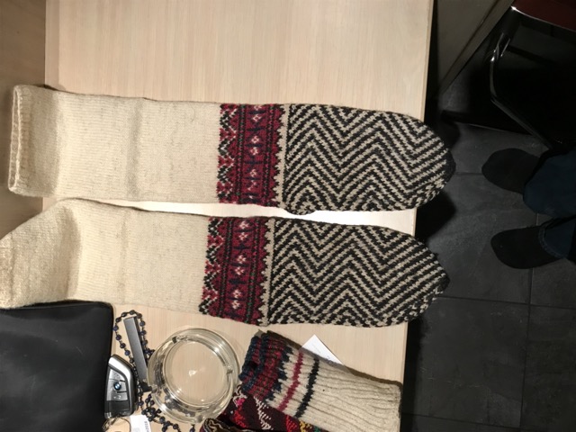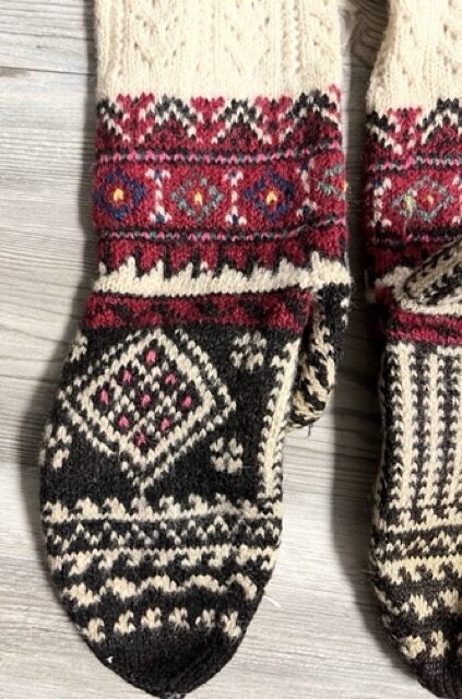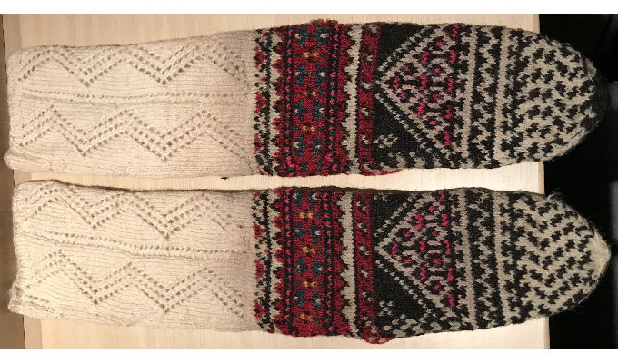 Exploring this costume with many variation of the traditional thigh high socks (tsourapia) of the women from Oreini Serres, Some men's socks also.